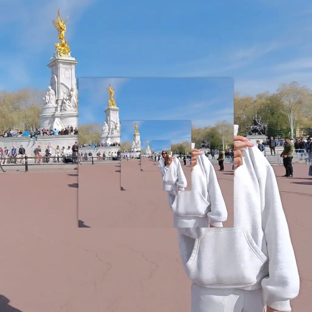 This style works particularly well for advertising, album covers, conceptual art, and any project seeking to convey themes of infinity, self-reference, or cyclical patterns. For best results, choose subjects with clear focal points like picture frames, mirrors, screens, or hands holding objects, as these natural "containers" help guide the recursive spiral and make the effect more comprehensible. The composition should have strong contrast and distinctive elements that remain recognizable even when scaled down, avoiding overly complex backgrounds that might become muddy in smaller iterations.