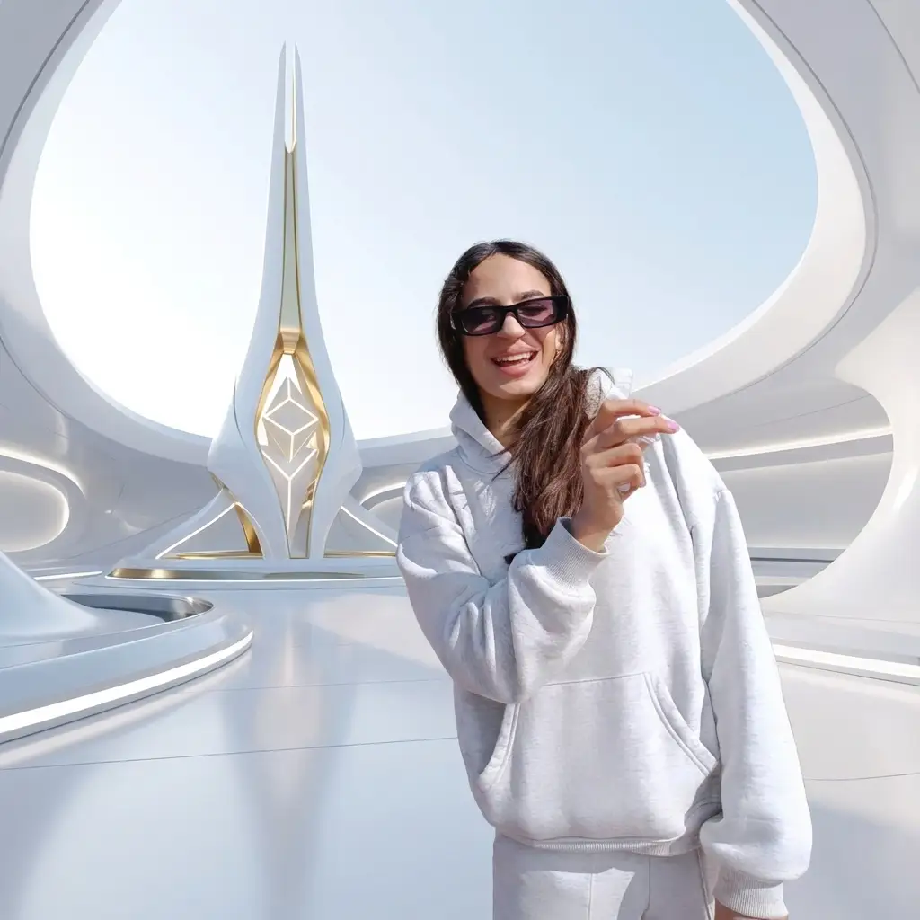 This prompt style works beautifully when you need imagery for tech startups, modern architectural concepts, product design mockups, or any project requiring a clean, aspirational vision of the future. To achieve the best results, include specific materials like glass, polished concrete, or matte plastics, and reference lighting conditions such as soft ambient glow or natural daylight to maintain that serene atmosphere.